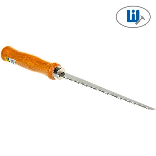 Ножовка по гипсокартону STAYER МАСТЕР 1517 применяется для распила деревянных заготовок, гипсокартона или пластмассы. Благодаря зауженному полотну, ножовку можно использовать для выпиливания отверстий различного диаметра. Лезвие выполнено из прочной стали с прямыми зубьями заточенным с двух сторон. Рукоять выполнена из дерева твердой породы.