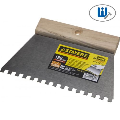 Читать все статьиStayer Шпатель «Трапеция» маляр, с дерев. ручк. 180мм, зуб.6х6мм