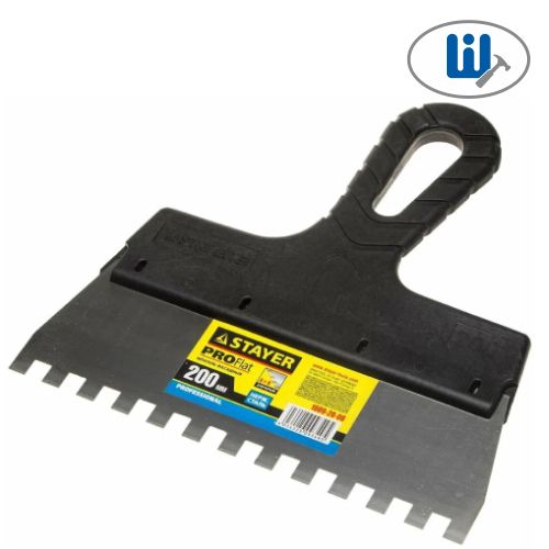 Читать все статьиStayer Шпатель зубч.нерж.плас.руч. L200мм, зуб8х8