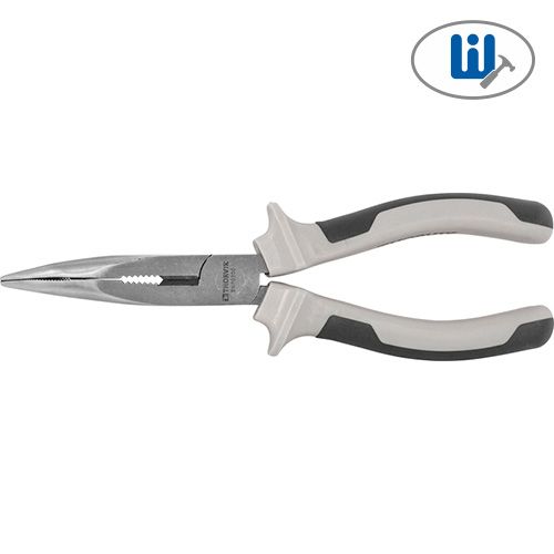 Читать все статьиДлинногубцы 160мм изогнутые 45° с двухкомпонентными рукоятками THORVIK BNP0150