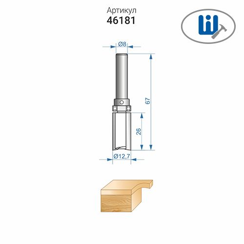 Фреза Энкор 46181 предназначена для чистовой обработки кромки и торца изделия из различных пород древесины.