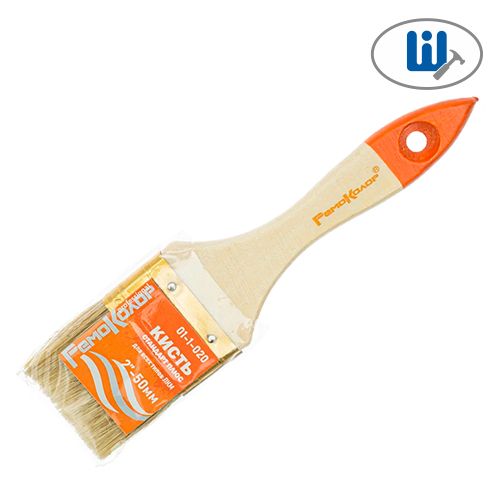 Кисть Стандарт 2" РемоКолор 01-1-020 имеет натуральную щетину, обеспечивающую равномерное покрытие поверхностей, а также работу с растворителями. Эргономичная деревянная рукоять обеспечивает удобный хват и предотвращает выскальзывание.