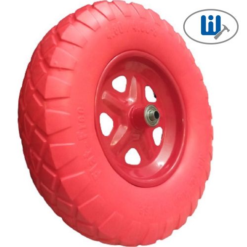 Полиуретановое колесо 4.80/4.00-8 (3.50-8) d16мм LWI39-16ПУ используется на одноколесных или двухколесных садовых или строительных тачках.Длина ступицы - 95 мм. Внутренний диаметр посадочного отверстия - 16 мм.