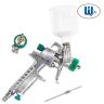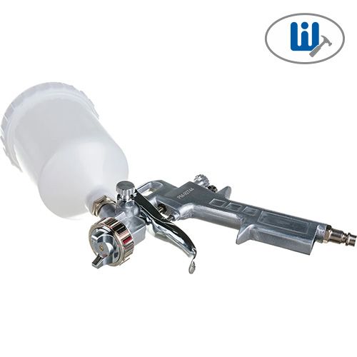Универсальный окрасочный пистолет РУССКИЙ МАСТЕР (PM-92744) конвекциональной системы распыления с верхним пластиковым бачком. Краскопульт рекомендуется для нанесения 1К синтетических эмалей, грунтов, а также для нанесения жидкой шпатлевки. На корпусе краскораспылителя расположены клапана для регулировки подачи ЛКМ и воздуха.