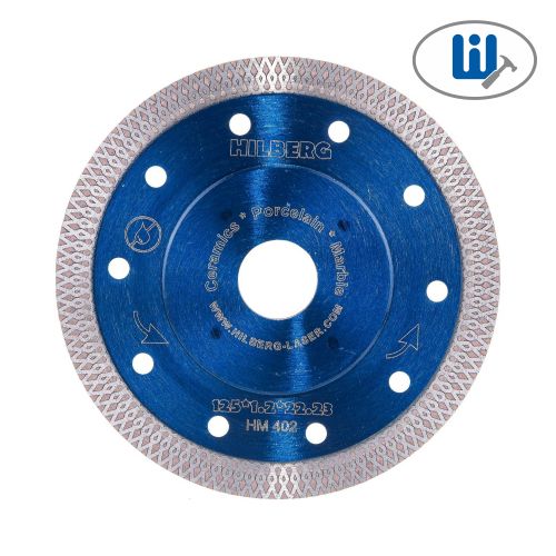 Алмазный диск Hilberg ультратонкий Hard Materials Х-type 125 мм - изготовлен методом горячего прессования. Используется для сухой резки керамогранита и керамики. Толщина алмазного слоя 1,2 мм, а высота 10 мм. Посадочное отверстие - 22,23 мм. Наличие х-образной режущей кромки позволяет осуществлять рез без применения водяного охлаждения и не допускает сколов. Диск подходит для работы на УШМ.
