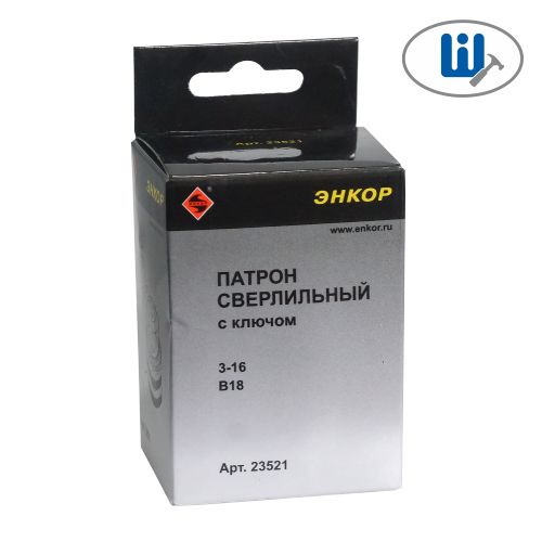 Сверлильный патрон ЗВП Энкор 23521 применяется совместно со сверлильными станками. Предназначен для закрепления сверл, зенкеров, разверток с диаметром хвостовика от 3 мм до 16 мм. Посадка — В18.