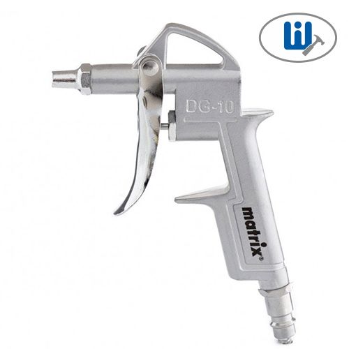 Продувочный пистолет Matrix 57330 предназначен для очищения шлангов, труб, пазов, отверстий, полостей изделий и различных поверхностей под давлением до 8 бар. Мощная воздушная струя быстро удаляет пыль, стружку, грязь и мелкий мусор, помогает подготовить поверхности под покраску.Пистолет работает со сжатым воздухом, поэтому им можно пользоваться во влажных помещениях без риска пожара и взрыва. Максимальный расход воздуха составляет 300 л/мин.Преимущества:Металлический корпус обладает стойкостью к износу и механическим воздействиям, что увеличивает срок службы пистолета.Быстросъемное соединение Рапид (Евро) помогает легко состыковать пистолет с пневматическим шлангом и сэкономить рабочее время.Устройство пуска сжатого воздуха отличается высокой надежностью и обеспечивает безукоризненную работу на протяжении всего срока эксплуатации.Компактные размеры 18 х 12 х 2 см и узкий носик облегчают продувку в труднодоступных местах.Благодаря весу 130 грамм с пистолетом комфортно работать даже продолжительное время.