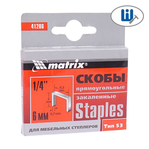 Читать все статьиСкобы 6мм 1000шт. тип 53 Matrix