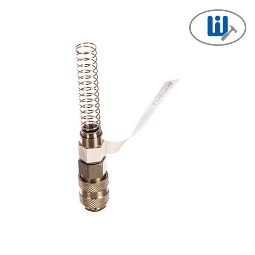 Разъемный соединитель рапид — пружинка FUBAG 180131 предназначен для надежного и герметичного соединения шланга с компрессором и пневмоинструментом. Оснастка оснащена пружиной, которая предотвращает перегибы и деформацию шланга в месте соединения с наконечником.
