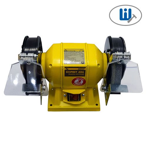 Станок оснащен мощным асинхронным двигателем. Хорошо сбалансированный вал и качественные подшипники исключают вибрацию и шум при работе. Отсутствие вибрации и резиновые опоры позволяют использовать станок без дополнительного крепления к верстаку. Безопасность при работе обеспечивают два широких защитных экрана. Для удобства в работе имеются регулируемые упоры. Станок комплектуется переходными кольцами для заточных кругов с посадочным диаметром 32 мм.