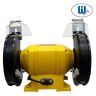 Станок оснащен мощным асинхронным двигателем. Хорошо сбалансированный вал и качественные подшипники исключают вибрацию и шум при работе. Отсутствие вибрации и резиновые опоры позволяют использовать станок без дополнительного крепления к верстаку. Безопасность при работе обеспечивают два широких защитных экрана. Для удобства в работе имеются регулируемые упоры. Станок комплектуется переходными кольцами для заточных кругов с посадочным диаметром 32 мм.