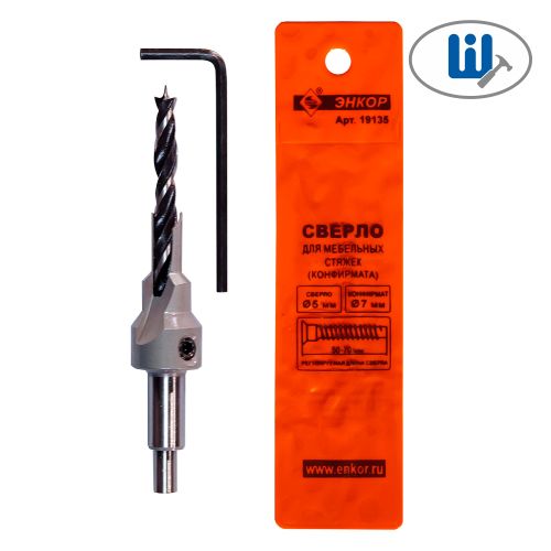 Читать все статьиСверло для мебельных стяжек/конфирмата, 5мм Энкор 19135