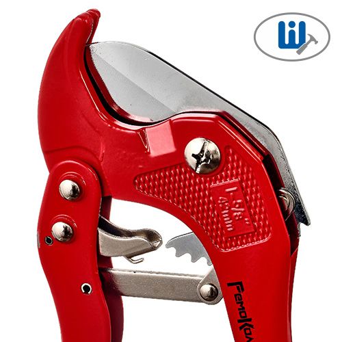 Материал: Корпус алюминиевый сплав и порошковое покрытие. Материал силовой части трубореза -инструментальная углеродистая сталь. Твердость режущей части 54-58HRC. Применение: для резки пластиковых труб диаметром до 42 мм.