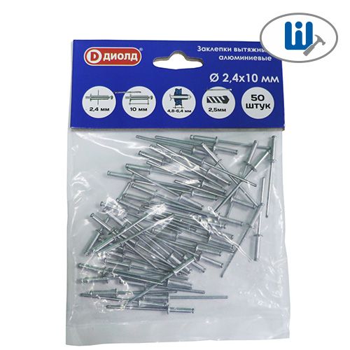 Читать все статьиЗаклепки вытяжные алюминиевые Диолд d-2,4х10 мм 50 шт. 90022230