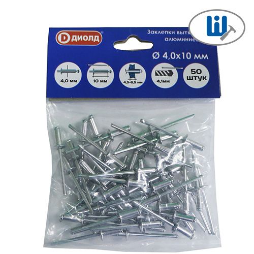 Читать все статьиЗаклепки вытяжные алюминиевые Диолд d-4х10 мм 50 шт. 90022210