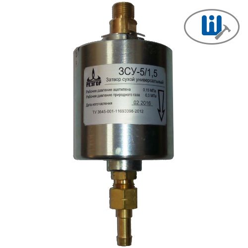 Затвор сухой универсальный (среднего давления) ЗСУ-5/1,5 (ЗСУ-1) устанавливается на стационарных постах газопламенной обработки металлов предприятий с целью защиты газопроводов от проникновения в них пламени и детонационной волны при различных режимах горения смеси горючего газа с окислителем, а также перетока кислорода или воздуха со стороны отбора газа.